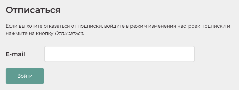 Затем нажать кнопку «отписаться от рассылки»