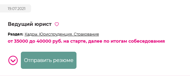 У каждой вакансии с правой стороны есть сердечко (розового цвета) «добавить в закладки»